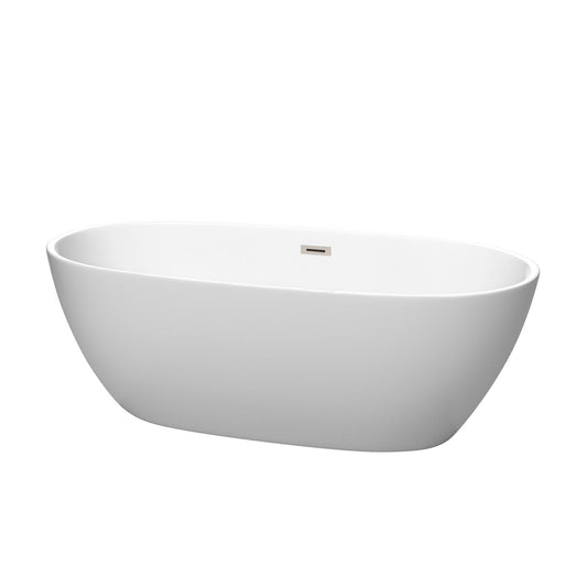 Wyndham Collection Juno 67" Freestanding Bathtub in Matte White With Brushed Nickel Drain and Overflow Trim