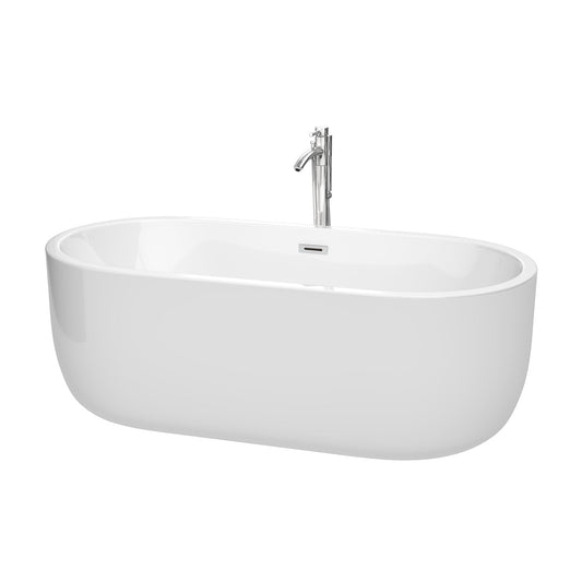 Wyndham Collection Juliette 67" Freestanding Bathtub in White With Floor Mounted Faucet, Drain and Overflow Trim in Polished Chrome