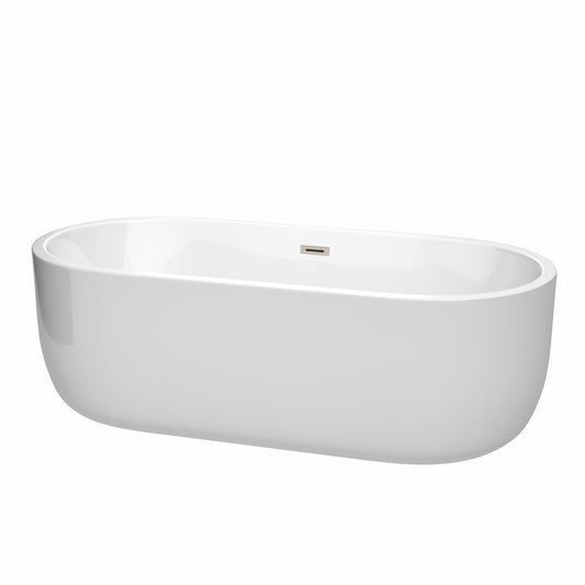 Wyndham Collection Juliette 71" Freestanding Bathtub in White With Brushed Nickel Drain and Overflow Trim