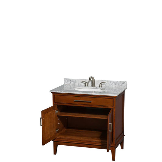 Wyndham Collection Hatton 36" Single Bathroom Vanity in Light Chestnut, White Carrara Marble Countertop, Undermount Oval Sink, and No Mirror