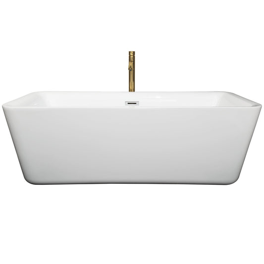 Wyndham Collection Galina 67" Freestanding Bathtub in White With Shiny White Trim and Floor Mounted Faucet in Brushed Gold