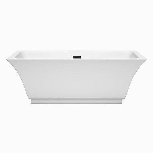 Wyndham Collection Florence 68" Freestanding Bathtub in White With Matte Black Drain and Overflow Trim