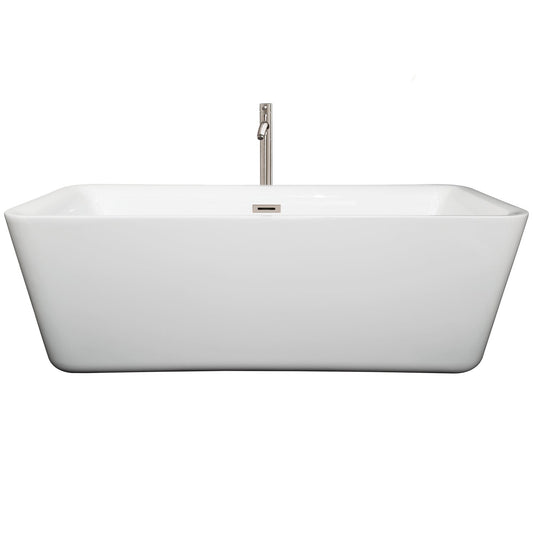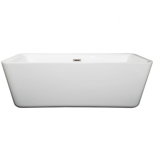 Wyndham Collection Emily 69" Freestanding Bathtub in White With Brushed Nickel Drain and Overflow Trim