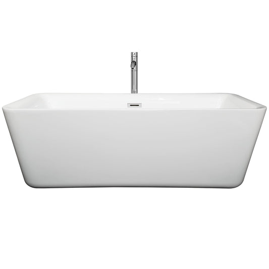 Wyndham Collection Emily 69" Freestanding Bathtub in White With Floor Mounted Faucet, Drain and Overflow Trim in Polished Chrome