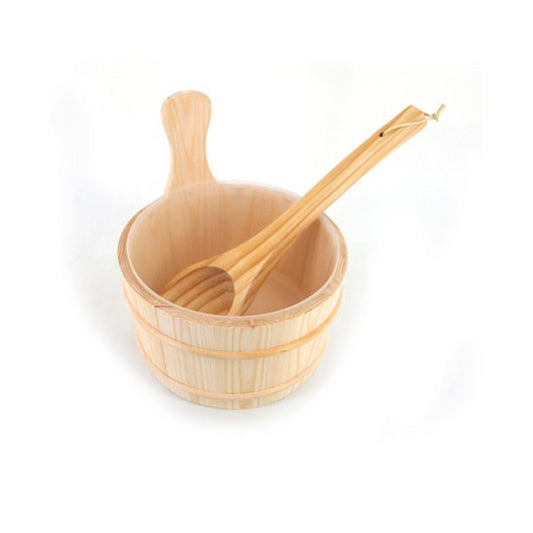 Aleko Aspine Wood Bucket With Plastic Liner and Water Scoop Sauna Accessory