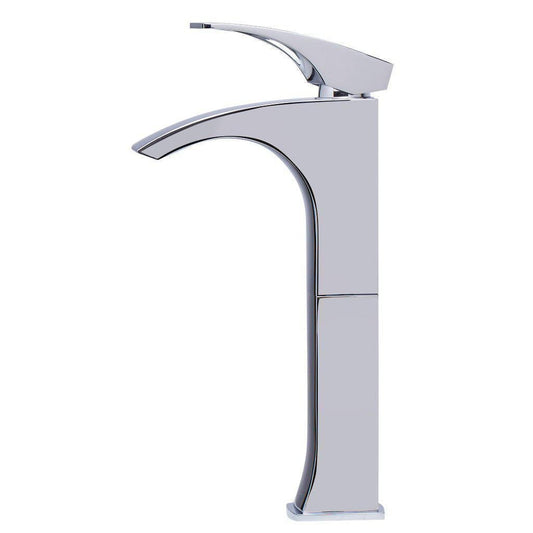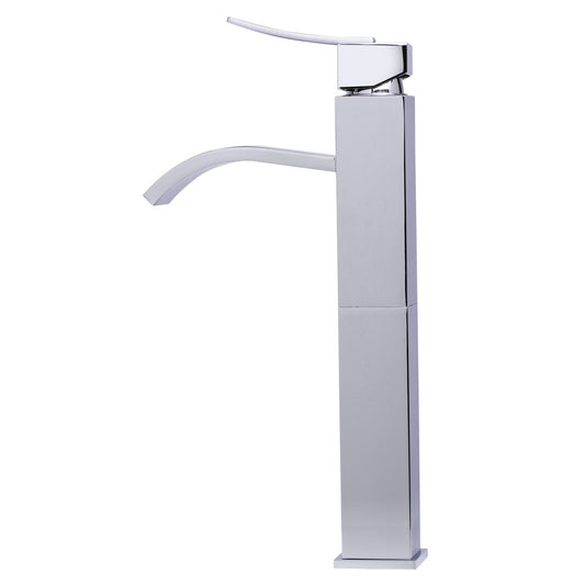 ALFI Brand AB1158-PC Polished Chrome Vessel Square Body Curved Spout Brass Bathroom Sink Faucet With Single Lever