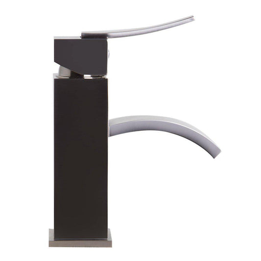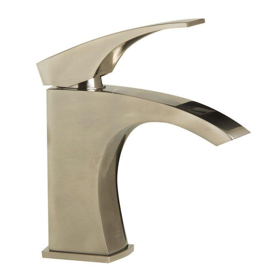 ALFI Brand AB1258-BN Brushed Nickel Single Hole Square Body Curved Spout Brass Bathroom Sink Faucet With Single Lever