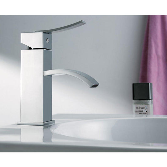 ALFI Brand AB1258-PC Polished Chrome Single Hole Square Body Curved Spout Brass Bathroom Sink Faucet With Single Lever
