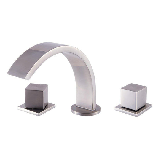 ALFI Brand AB1326-BN Brushed Nickel Widespread Curved Spout Brass Bathroom Sink Faucet With Double Square Knob