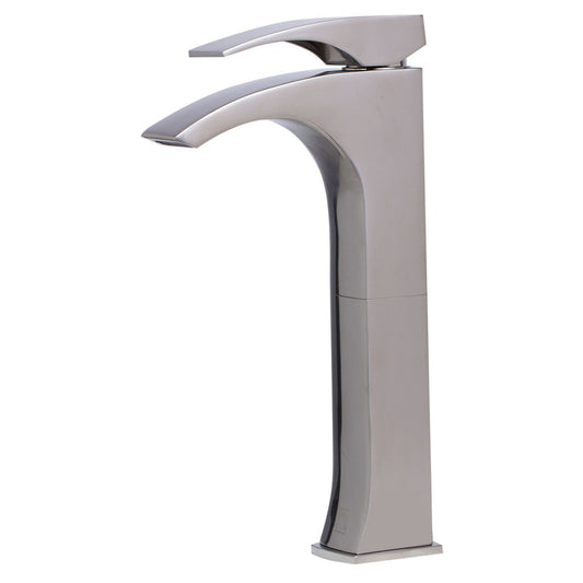 ALFI Brand AB1158-BN Brushed Nickel Vessel Square Body Curved Spout Brass Bathroom Sink Faucet With Single Lever