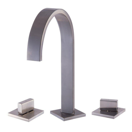 ALFI Brand AB1326-BN Brushed Nickel Widespread Curved Spout Brass Bathroom Sink Faucet With Double Square Knob