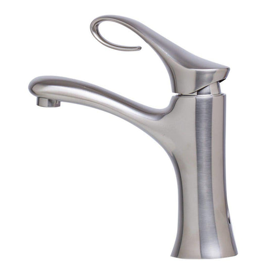 ALFI Brand AB1295-BN Brushed Nickel Single Hole Brass Bathroom Sink Faucet With Curled Single Lever