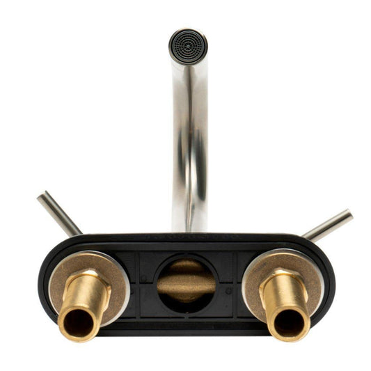 ALFI Brand AB1035-BN Brushed Nickel Wall-Mounted Widespread Round Spout Brass Bathroom Sink Faucet With Two Cross Handles