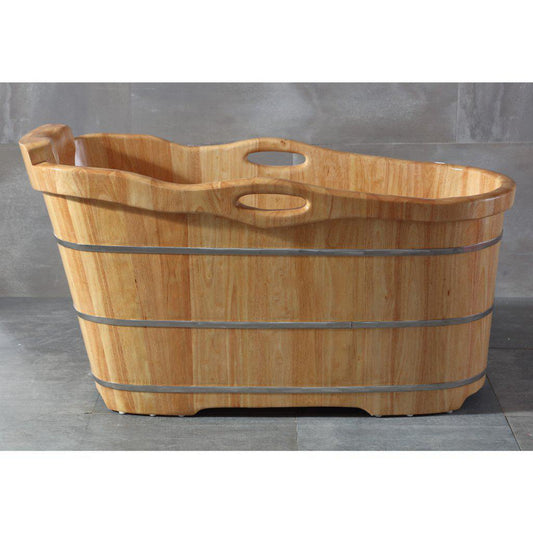 ALFI Brand AB1187 57" One Person Freestanding Soaking Rubber Wooden Bathtub With Headrest