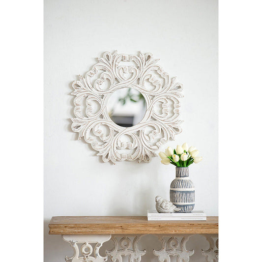 A&B Home 24" x 24" Bundle of 28 Round Floral Design Rustic White Wooden Frame Wall-Mounted Mirror