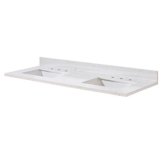 Altair Andalo 61" x 22" Snow White Composite Stone Bathroom Vanity Top With Double White SInk