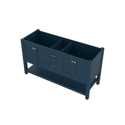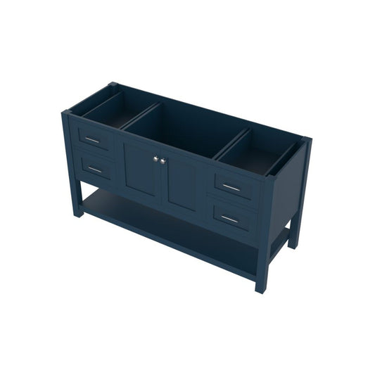 Alya Bath Wilmington 60" Double Blue Freestanding Bathroom Vanity With Brushed Nickel Edge Handles
