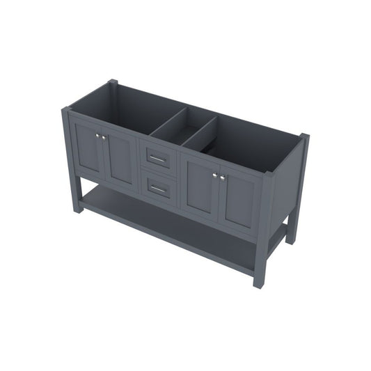 Alya Bath Wilmington 60" Double Gray Freestanding Bathroom Vanity With Brushed Nickel Edge Handles