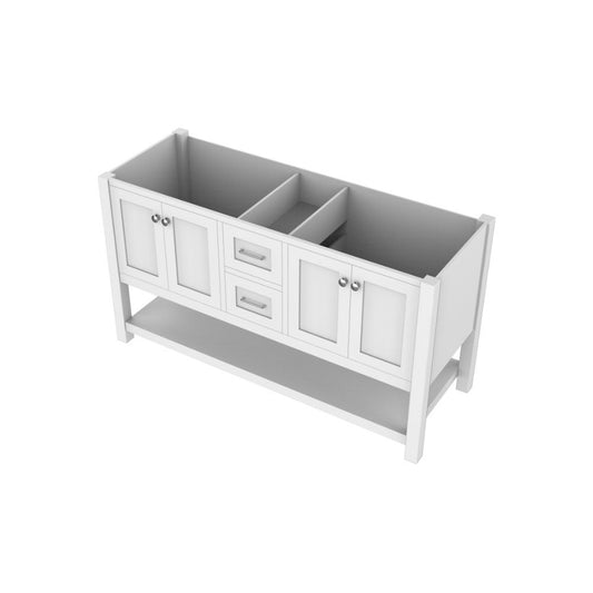 Alya Bath Wilmington 60" Double White Freestanding Bathroom Vanity With Brushed Nickel Edge Handles