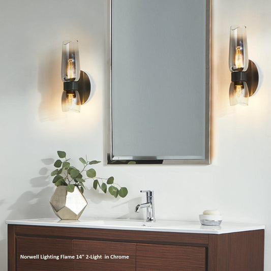 Norwell Lighting Flame 14" 2-Light Chrome Vanity Wall Sconce With Clear/Chrome Gradient Diffuser