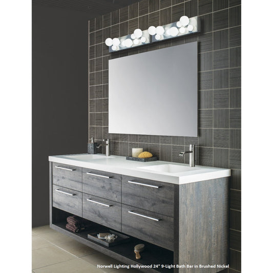 Norwell Lighting Hollywood 24" 9-Light Brushed Nickel Bath Bar Vanity Light