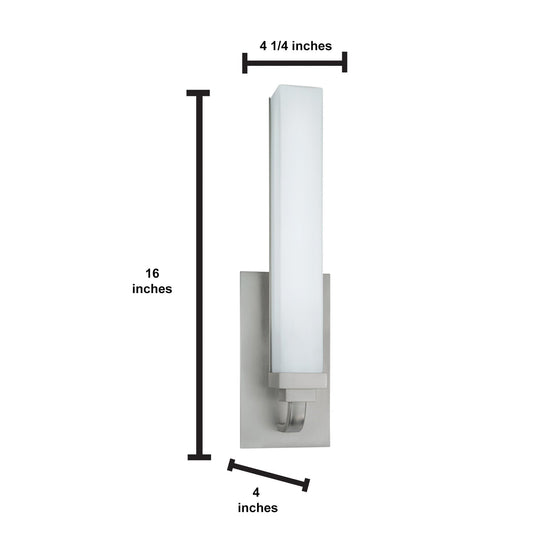 Norwell Lighting Tetris 16" x 4" 1-Light Brushed Nickel LED Vanity Sconce With Matte Opal Diffuser