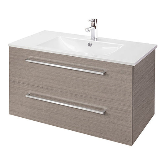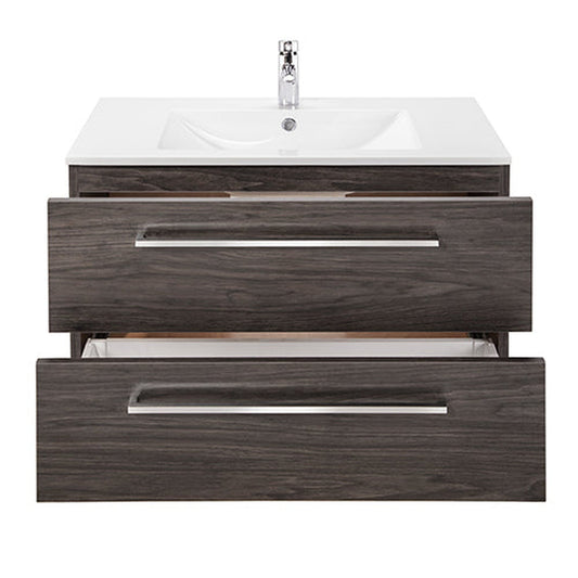 Abby Bath Aiden 30” x 20” Wall-Mounted Vanity in Slate Finish With Two Drawers and Chrome Handles