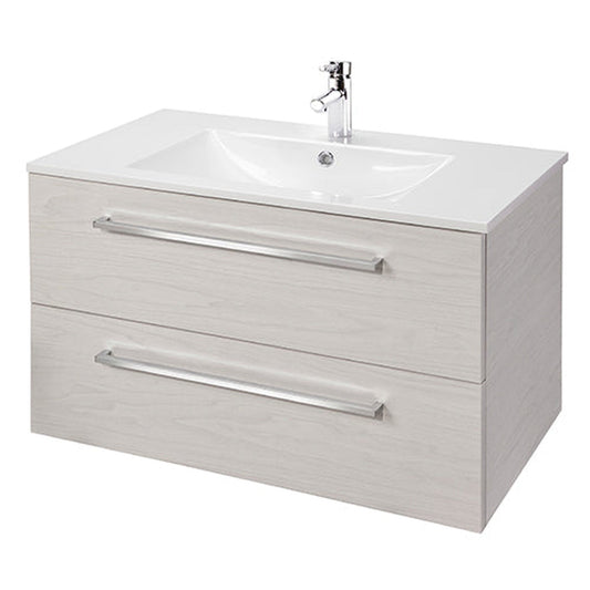 Abby Bath Aiden 30” x 20” Wall-Mounted Vanity in Winter White Finish With Two Drawers and Chrome Handles