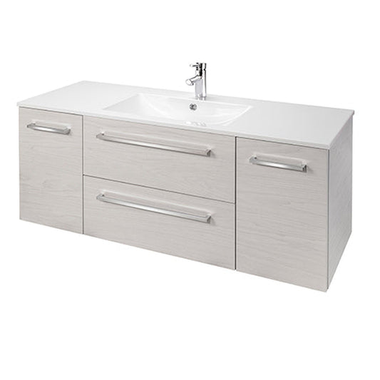 Abby Bath Aiden 48” x 20” Wall-Mounted Vanity in Winter White Finish With Two Drawers and Chrome Handles