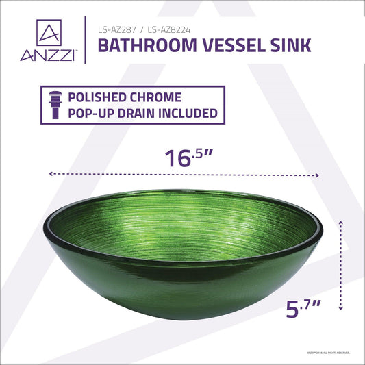 ANZZI Gardena Series 17" x 17" Round Verdure Green Deco-Glass Vessel Sink With Polished Chrome Pop-Up Drain