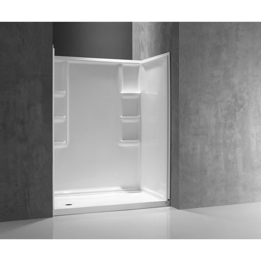 ANZZI Vasu Series 60" x 36" x 74" White Acrylic Alcove Three Piece Shower Wall System With 6 Built-in Shelves