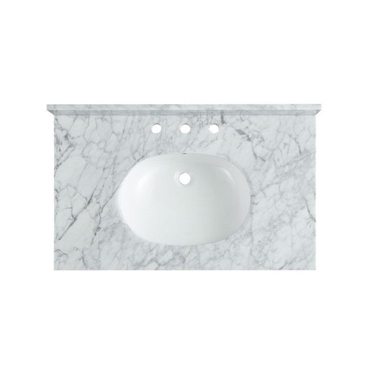 ANZZI Verona Series 34.5" x 34" Console Sink in White Carrara Countertop With Brushed Gold Stainless Steel Stand Legs