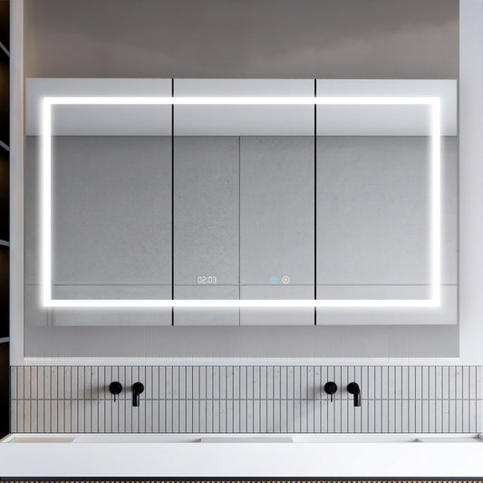 Aquadom Signature Royale 60" x 36" Triple-Door LED Lighted Medicine Cabinet With Defogger, Integrated LED 3X Magnifying Mirror and Electrical Outlet With USB
