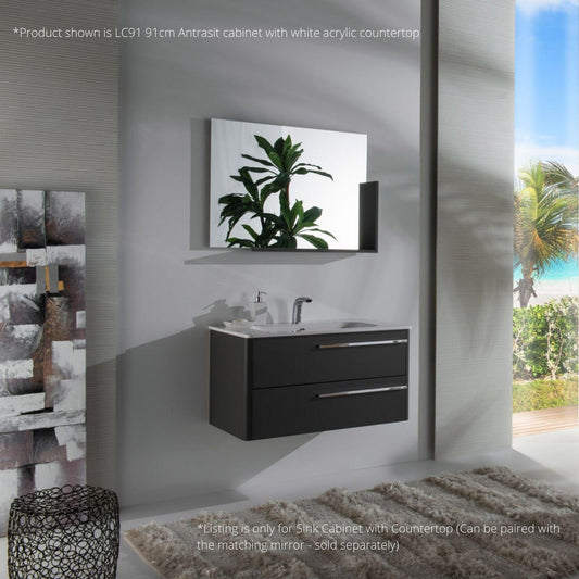 Armadi Art Moderno Luce 36” x 20” Antrasit Vanity With White Acrylic Countertop and Mirror With Shelf