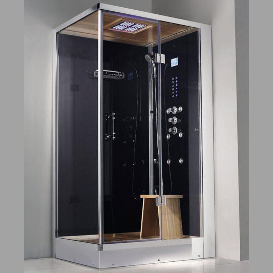 Athena Black 59" x 36" x 89" 2-Person 12-Jet Framed Rectangular Steam Shower With Right Handed Hinged Door