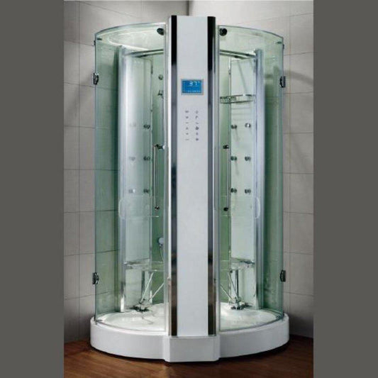 Athena 53" x 53" x 90" 2-Person 12-Jet Corner Steam Shower With Dual Hinged Doors & LED Chromatherapy Lighting