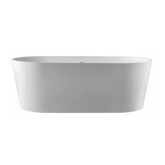 PULSE ShowerSpas 59" W x 30" D Polished White Acrylic Oval Freestanding Tub With Overflow and Stainless Steel Brackets