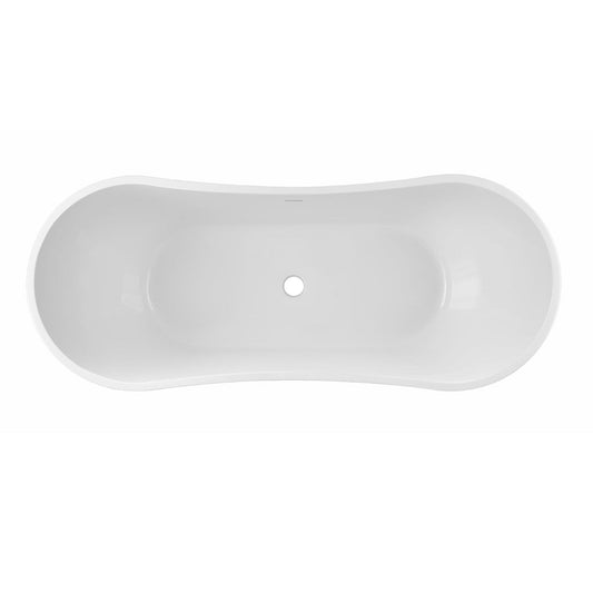 FerdY Bali 67" x 30" Oval Glossy White Acrylic Freestanding Roll Top Soaking Bathtub With Brushed Nickel Drain and Overflow