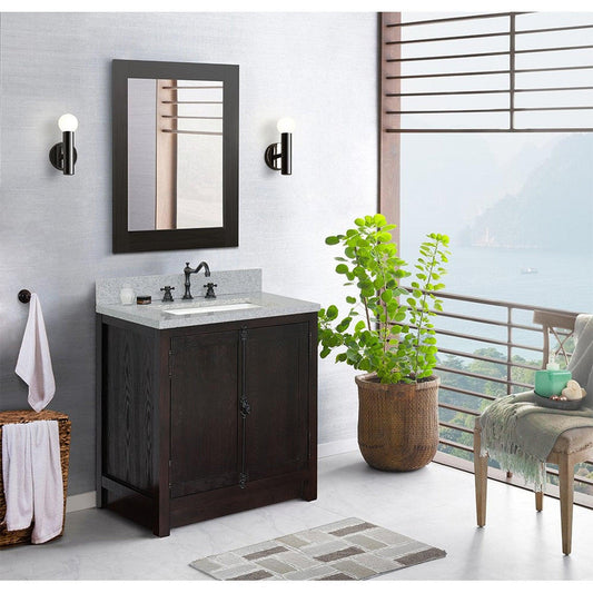 Bellaterra Home Plantation 31" 2-Door Brown Ash Freestanding Vanity Set With Ceramic Undermount Rectangular Sink and Gray Granite Top
