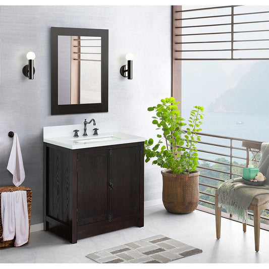 Bellaterra Home Plantation 31" 2-Door Brown Ash Freestanding Vanity Set With Ceramic Vessel Sink and White Quartz Top