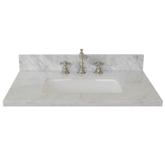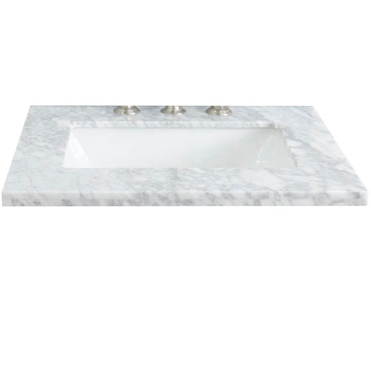 Bellaterra Home 31" x 22" White Carrara Marble Three Hole Vanity Top With Undermount Rectangular Sink and Overflow
