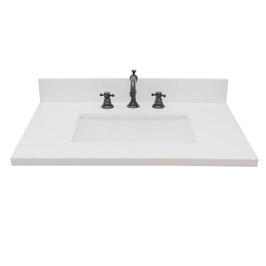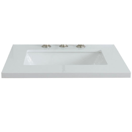 Bellaterra Home 31" x 22" White Quartz Three Hole Vanity Top With Undermount Rectangular Sink and Overflow
