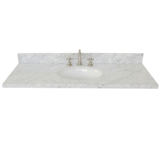 Bellaterra Home 49" x 22" White Carrara Marble Three Hole Vanity Top With Undermount Oval Sink and Overflow