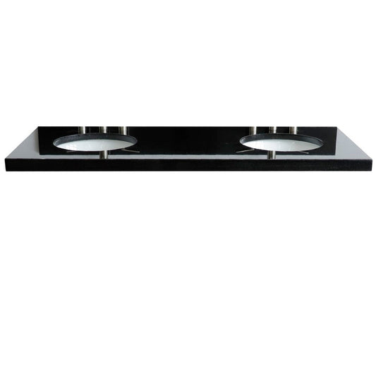 Bellaterra Home 61" x 22" Black Galaxy Granite Three Hole Vanity Top With Double Undermount Oval Sink and Overflow