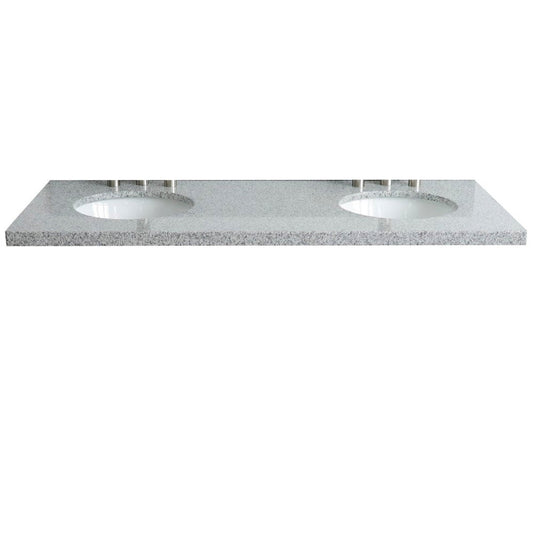 Bellaterra Home 61" x 22" Gray Granite Three Hole Vanity Top With Double Undermount Oval Sink and Overflow