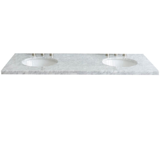 Bellaterra Home 61" x 22" White Carrara Marble Three Hole Vanity Top With Double Undermount Oval Sink and Overflow