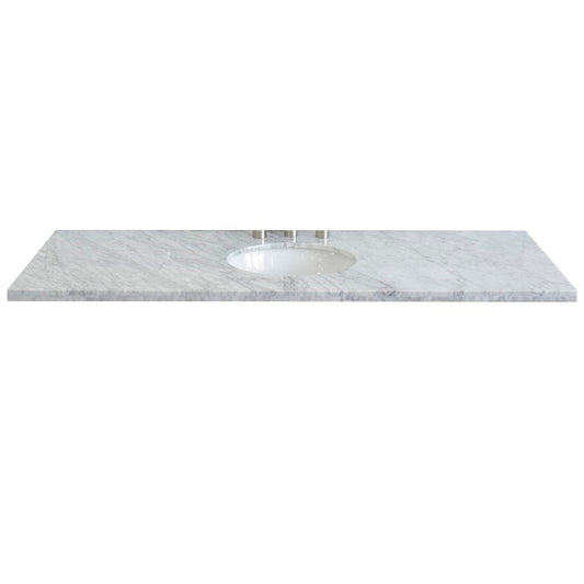 Bellaterra Home 61" x 22" White Carrara Marble Three Hole Vanity Top With Undermount Oval Sink and Overflow