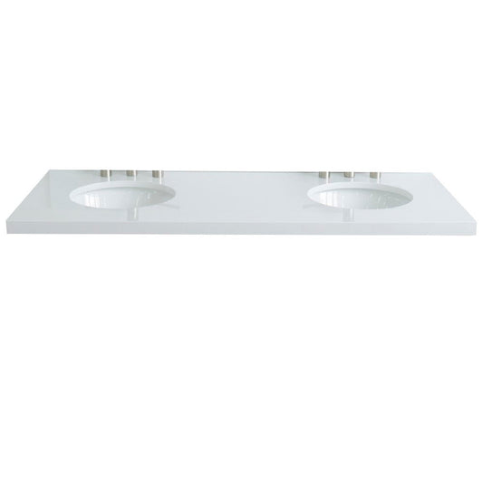 Bellaterra Home 61" x 22" White Quartz Three Hole Vanity Top With Double Undermount Oval Sink and Overflow