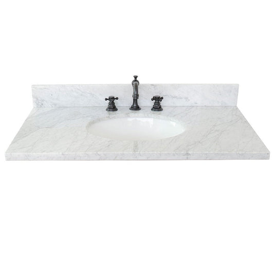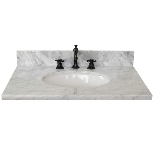 Bellaterra Home 37" x 22" White Carrara Marble Three Hole Vanity Top With Undermount Oval Sink and Overflow