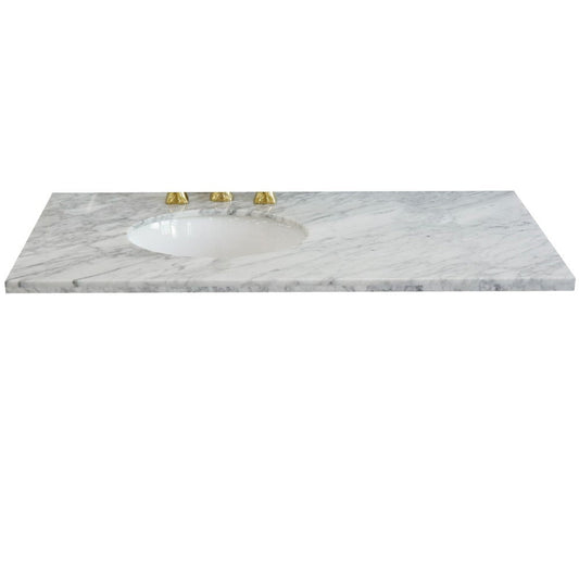 Bellaterra Home 49" x 22" White Carrara Marble Three Hole Vanity Top With Double Undermount Oval Sink and Overflow